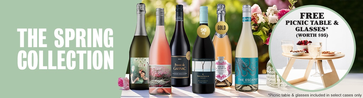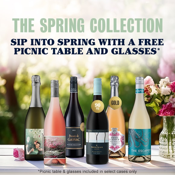 Mouth-watering whites and pinks from Australia and South Africa, join with a lovely party sparkler and very classy Gold-medal French pink fizz – plus a very handy foldaway picnic table and two picnic glasses for a perfect Spring celebration pack.